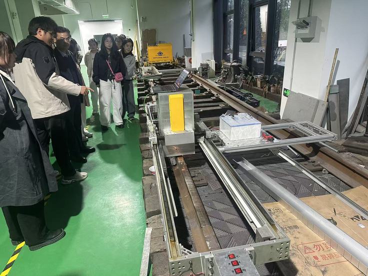 在合肥平行线机器人公司,总经理陈志远简要分析了传统铁路养护存在的痛点,介绍了公司在解决痛点帮助铁路部门进行数字化转型方面开展的卓有成效工作。总经理助理赵凯详细介绍了“轨道智能养护机器人”项目,让师生们直观了解到轨道智能化养护的前沿趋势。在企业展厅与实操车间内,师生们实地参观了轨道智能检测设备的研发生产线,观摩了机器人的现场演示。