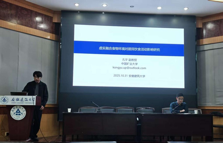 孔宇副教授以“虚实融合食物环境对居民饮食活动影响研究”为主题进行分享。他首先结合智能技术驱动的城市发展背景,梳理研究时代背景与意义,强调探究虚实融合食物环境的重要性。接着围绕人地关系理论等,指出智能技术改变城市空间功能与居民活动模式。最后分享了基于南京居民的实证研究,一是揭示了健康食物外卖供给的空间分异与社会经济差异;二是提出了“扩展的线上外卖食物环境”(OFDS)概念,并发现不同群体外卖使用倾向及扩展食物环境对其使用频率的影响。