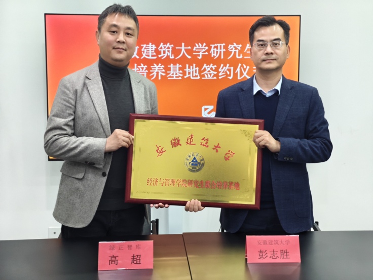 随后,彭志胜与高超代表双方共同签署了研究生联合培养基地建设协议书,并为“安徽建筑大学研究生联合培养基地”揭牌。双方将共建研究生联合培养基地,为研究生提供联合指导以及高质量的实习与就业岗位,并积极探索联合申报科研课题、共同开展案例研究等。