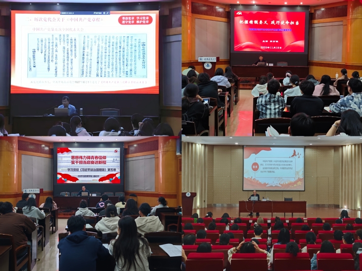 培训以理论教学为核心,构建系统全面的学习体系。校党委常委、组织部部长吴运传围绕《中国共产党章程》开展专题辅导,深刻阐释党员义务与初心使命;马院党总支书记李万银从重大意义、丰富内涵和贯彻落实三个角度深入解读习近平总书记关于党的建设的重要思想;经管学院党委书记潘和平领学《习近平谈治国理政》第五卷,引导学员将思想伟力转化为实干动力;公管学院院长黄佳豪解读党的二十届四中全会精神,明晰新时代改革发展方向。系列理论课程兼具深度与温度,帮助学员夯实理论基础、坚定理想信念。