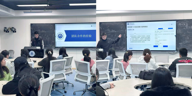 本网讯 为切实提升学生干部的实践能力,进一步夯实团学组织协作根基。近日,经管学院于金寨路校区建树楼523教室精心组织开展了青年学生干部成长工作坊系列活动第一期“聚力同心,逐梦前行——学生组织大型项目的协同管理与高效执行”。此次活动特邀学院24届研究生会主席吴德龙、24届本科学生会主席冯圣浩担任主讲嘉宾,活动由团委学生会(研究生会)承办,吸引了50余名同学踊跃参与。