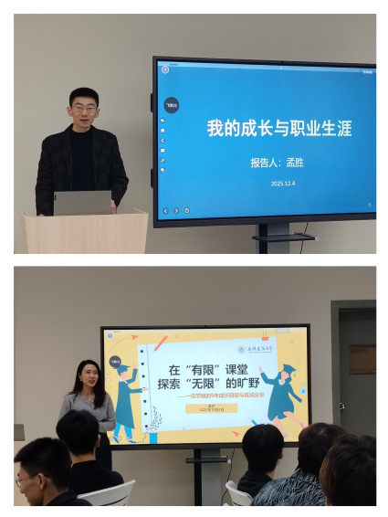 在分享环节,两位校友结合各自行业经历,讲述了从校园走向职场的思考与感悟。