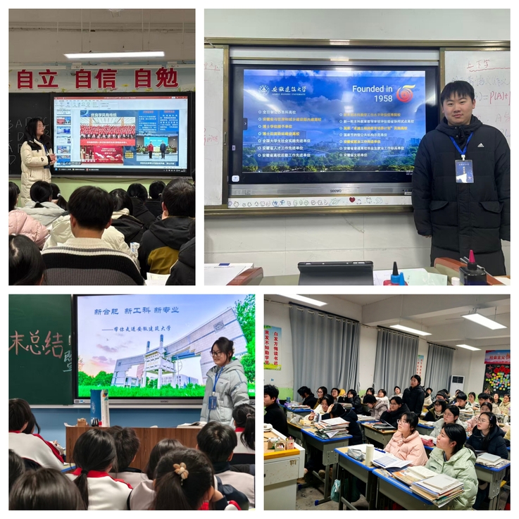 学院精准对接高招宣传需求,组织财务管理、工程管理等专业优秀学子重返高中母校,开展安徽建筑大学专场高招宣讲活动。在合肥六中、黑龙江桦川一中、安庆怀宁高河中学等多所中学,学子们以“学长学姐”的亲切身份,结合自身就读经历与专业感悟,通过播放校园宣传片、分享实景素材、现场互动答疑等形式,全面解读建大办学定位、专业优势、人才培养特色及校园文化内涵,细致解答高中学子关于专业选择、志愿填报、升学规划等核心疑问。宣讲过程中,学子们积极传递“进德、弘毅、博学、善建”的校训精神,以实际行动当好母校“代言人”。此次活动不仅为高中学子搭建了精准了解高校的桥梁,为其升学规划提供了科学参考,更进一步扩大了我校的影响力,构建起建大与高中之间人才培养的良性互动纽带。