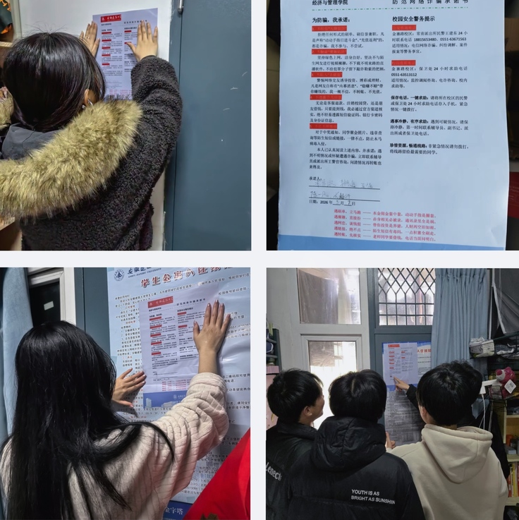 从宿舍走访的温情嘱咐到主题班会的思想碰撞,再到承诺书签下的庄严一刻,经管学院构筑起了更加坚固的立体化反诈防线。防诈教育并非一朝一夕,学院还将持续推进长效机制建设,让安全意识融入日常,切实守护好每一位同学的财产安全与身心健康。(作者:盛创、胡萍;一审:徐洁;二审:汪令宇;三审:潘和平)