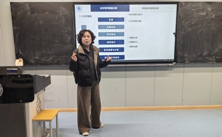 学术成长路上,朋辈同行更具力量。2024级会计专业钱雪婷同学以“会计类论文写作经验与审稿意见修改分享”为主题,围绕论文选题构思、数据收集整理、撰写规范把控及投稿返修技巧等核心环节,进行了全流程、全方位的细致剖析,清晰拆解了论文写作中的重点难点。结合自身参与MPAcc案例大赛的实战经历,她分享了参赛过程中的思考与收获,鼓励在场女生在科研道路上勇于尝试、勤于打磨,在反复修改中锤炼能力,在持续探索中收获成长。