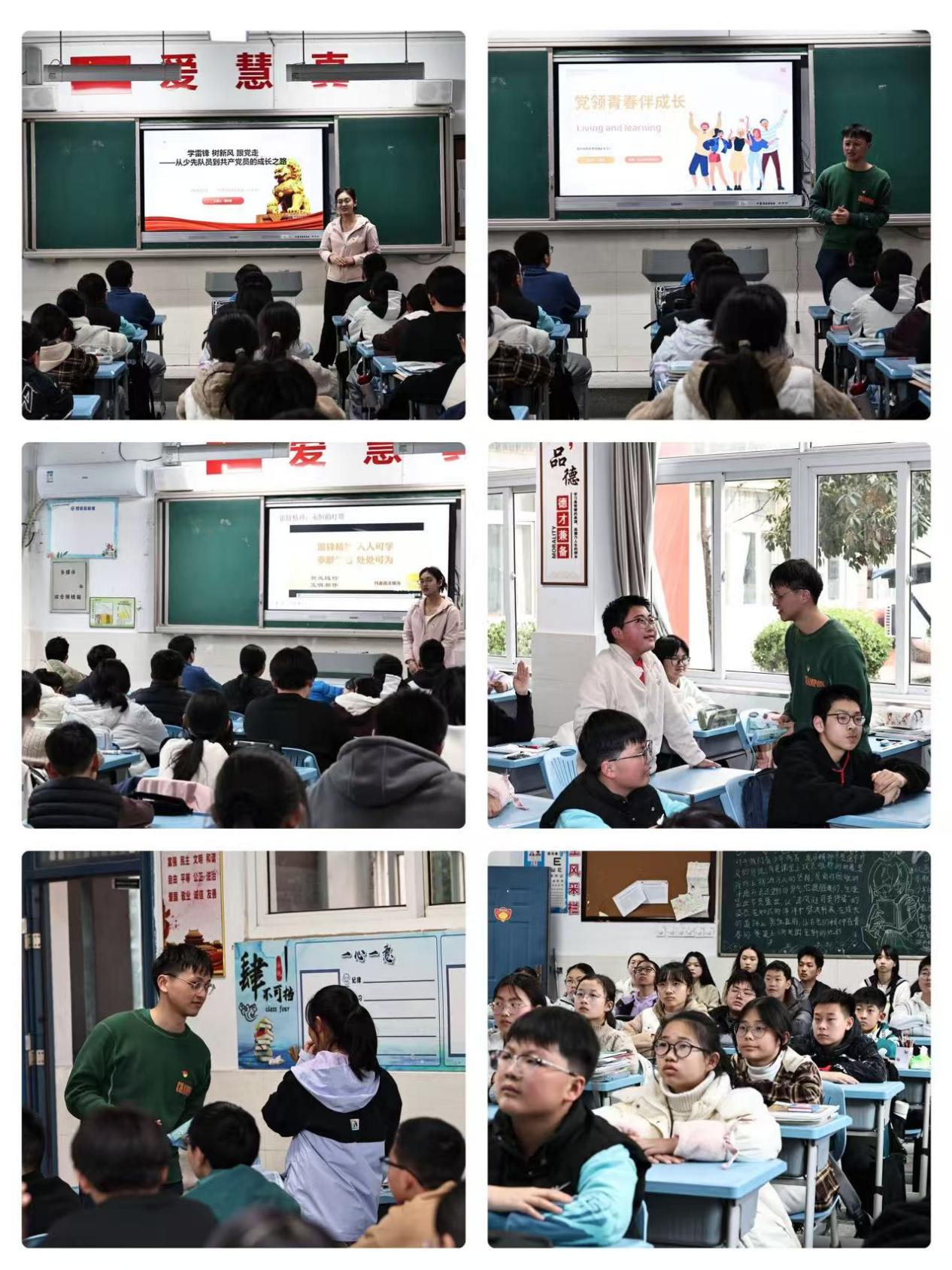 活动中,支部党员程文静同志以《学雷锋,树新风,跟党走——从少先队员到共产党员的成长之路》为题进行分享。针对初中生正处于政治身份转变的关键期,她系统讲解了少先队员、共青团员与共产党员之间血脉相承的关系,通过提问互动的形式,引导同学们思考雷锋精神的时代内涵。随后,支部党员曹辉同志以《党领青春伴成长》为主题,为同学们打开了一扇通往大学生活的窗户。他分享了大学期间丰富多彩的学习与生活,介绍了大学课堂的趣味性与实践活动的魅力,以趣味问答激发了同学们对未来校园生活的向往,鼓励大家将当下的努力与长远的梦想相结合。