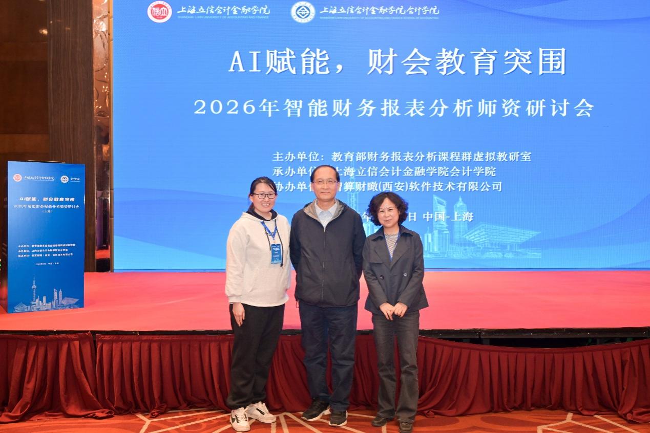 本网讯 4月18—19日,由教育部财务报表课程群虚拟教研室主办,上海立信会计金融学院会计学院承办,智算财瞰(西安)软件技术有限公司协办的“AI赋能,财会教育突围:2026年智能财务报表分析师资研讨会”在上海成功举办。经济与管理学院MPAcc中心主任强群莉教授和骨干教师王晶应邀参会,围绕财会专业升级改造与课程体系优化展开学习交流。