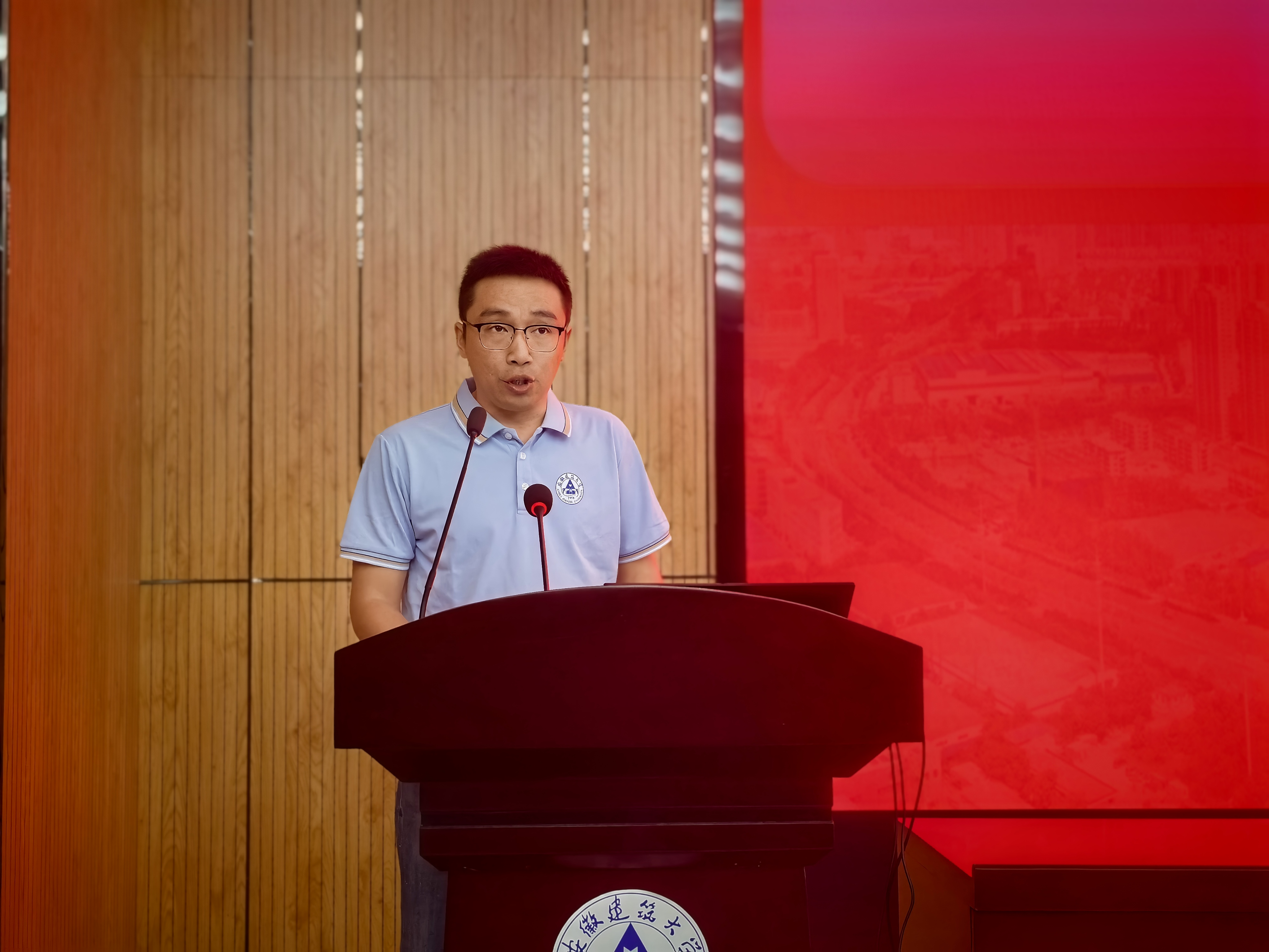 传经验引方向,寄厚望助成长。安徽建筑大学2025年师德标兵、市政工程系主任杨厚云作为教师代表发言,他从“完成角色转换”“树立明确目标”“热爱专业坚持”“守护身心健康”四个维度,为新生勾勒大学成长蓝图,寄语学子以“久久为功”的韧劲深耕专业,在主动探索中收获成长。
