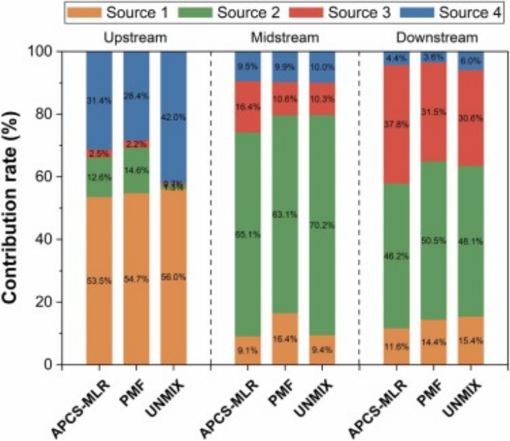 研究以长江流域为对象,综合运用自组织映射、磷酸盐氧同位素及多种受体模型,系统解析了流域内磷酸盐的空间分布、来源构成及其驱动机制。研究发现,长江流域整体水质状况良好,可溶性活性磷平均浓度为0.076 mg/L,磷酸盐饱和度介于18%–95%之间。通过同位素与机器学习融合分析,识别出农业排放、畜禽养殖、磷矿开采以及以污水为主的混合源为主要磷来源。在上游地区,磷矿贡献占比最高(54.7%),中游以农业源为主(66.1%),下游则表现为农业源(48.3%)与混合源(33.3%)共同主导。研究进一步揭示了不同区域磷污染的主导驱动因素,为跨农业—城市梯度的流域磷污染精准管控提供了科学依据。该研究构建的“机器学习+同位素+多模型”集成框架,为大尺度复杂流域污染源解析提供了新方法,具有较强的推广价值与应用前景。(作者:陈星 一审:侯晓云 二审:黄健 三审:谢发之)