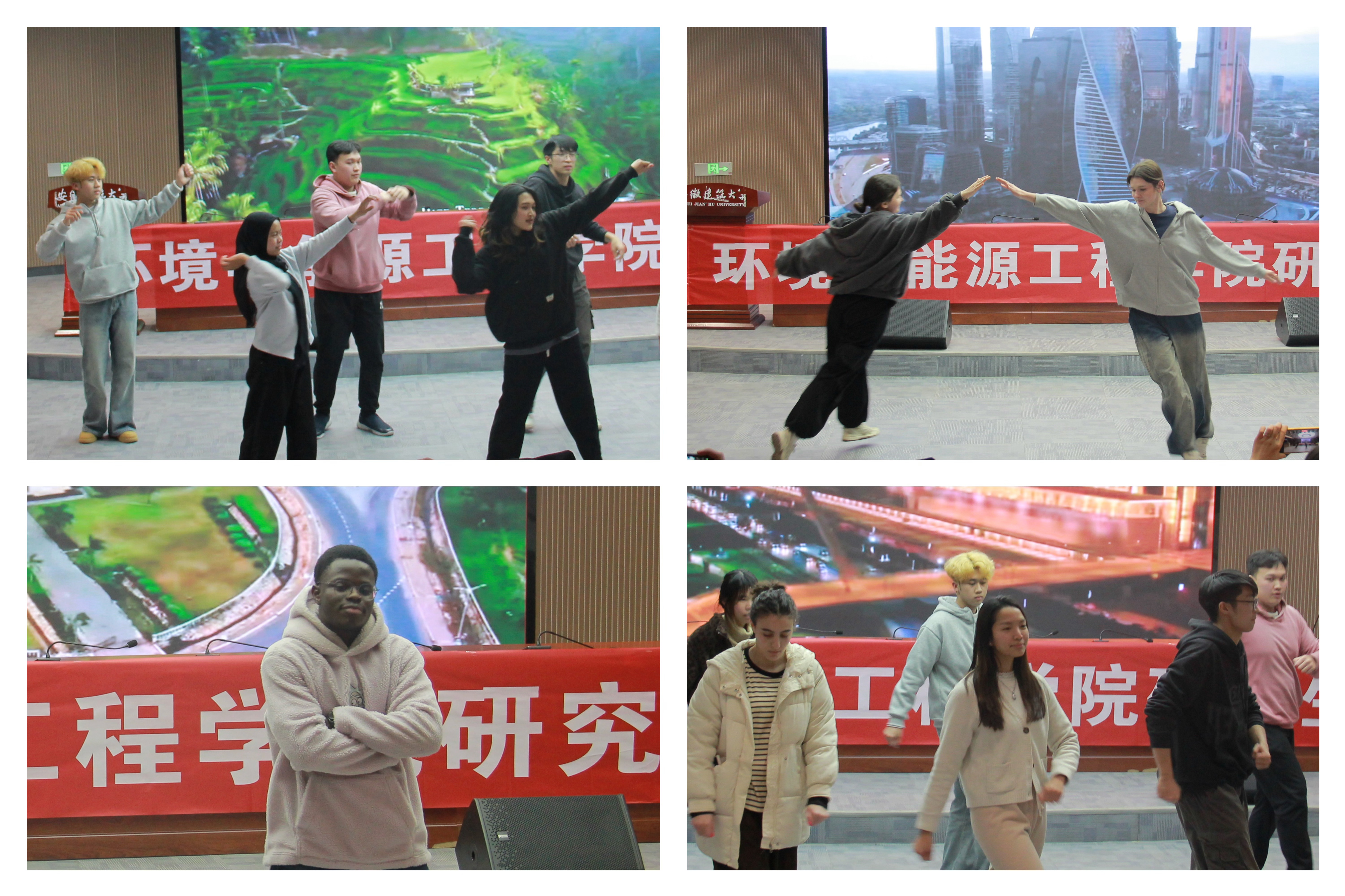 搭建中外交流平台、促进文明互鉴共生,是本次展演的鲜明特色。互动游戏“方言传声筒”点燃现场氛围,中外学子结对参与,在学说方言、传递趣味语句的过程中,感受汉语言文化的博大精深与独特魅力;国际学生带来的《多元舞蹈串烧》惊艳全场,非洲的热情鼓点、印尼的灵动舞步、泰国的欢快舞姿依次绽放,以肢体语言勾勒不同国家的文化风情,诠释“各美其美、美美与共”的深刻内涵。这场跨越国界的文化互动,打破了语言与文化的壁垒,让中外学子在欢声笑语中增进情谊、开阔视野,为学院校园文化注入多元活力,成为新时代高校国际文化交流的生动实践。