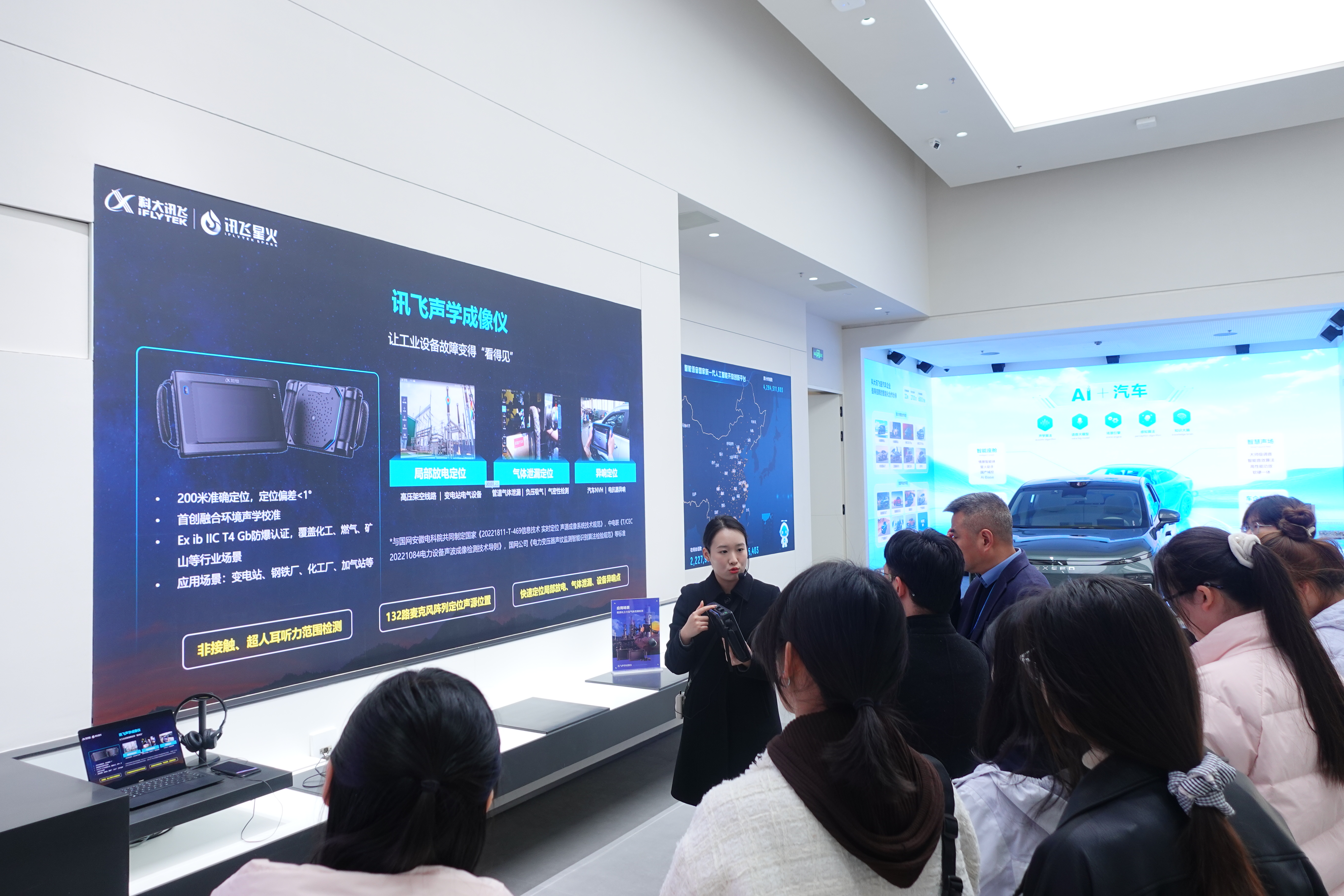 座谈结束后,环能学院师生一行先后参观了科大讯飞人工智能展厅、技术研发中心及讯飞小镇示范区域,沉浸式感受企业在智慧城市、智慧建筑及特色园区建设等领域的核心技术成果。夏自圣结合讯飞小镇的建设运营实践,重点讲解了AI技术在园区规划设计、生态治理及配套服务优化中的落地应用,直观呈现人工智能技术与学院优势学科的融合潜力,让在场师生深受启发。