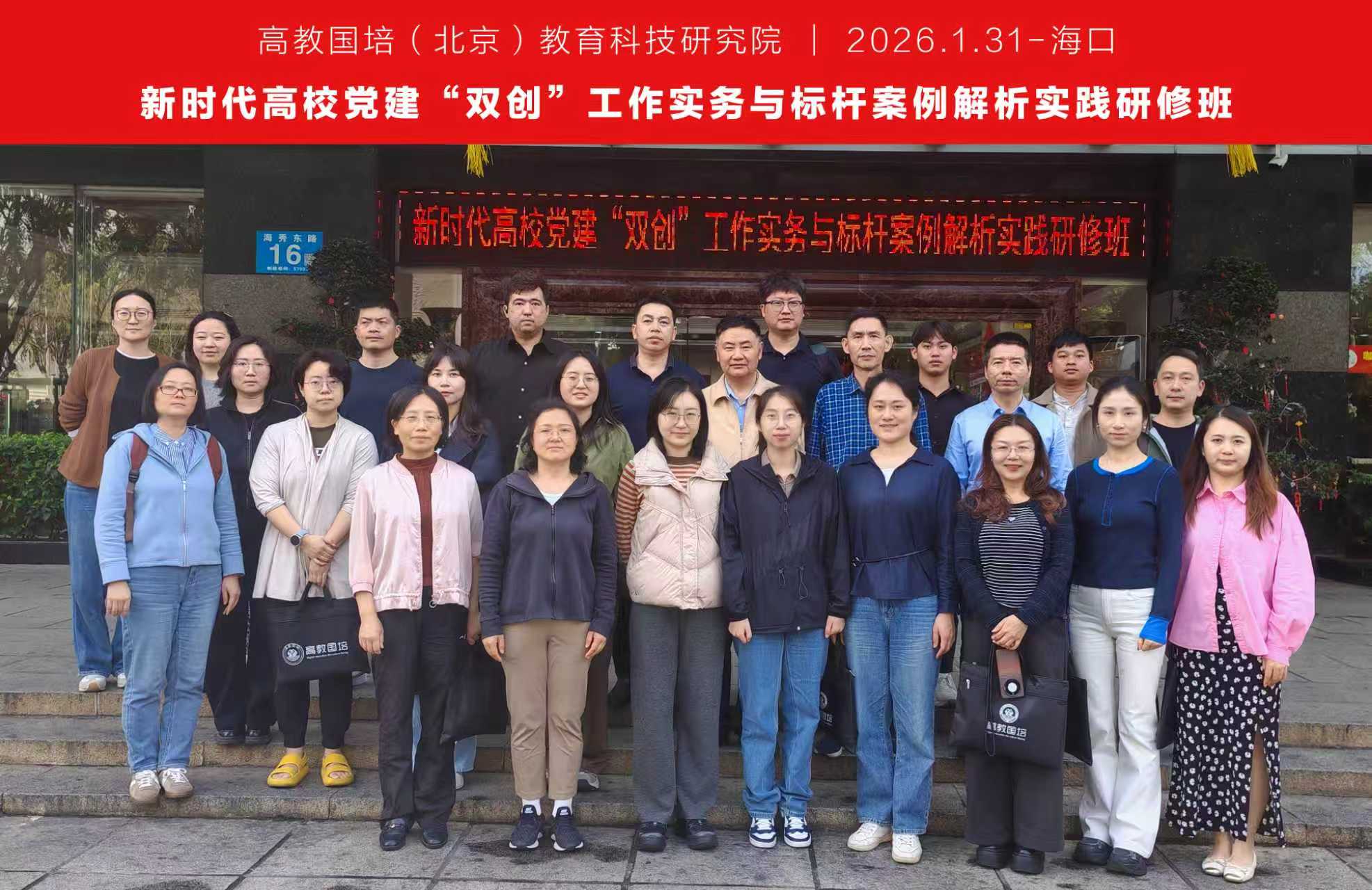 本网讯 为深入学习贯彻新时代党的建设总要求,扎实推进高校党建“双创”工作提质增效。1月30日,学院学生党支部书记徐明露赴海口市参加“新时代高校党建‘双创’工作实务与标杆案例解析实践研修班”。