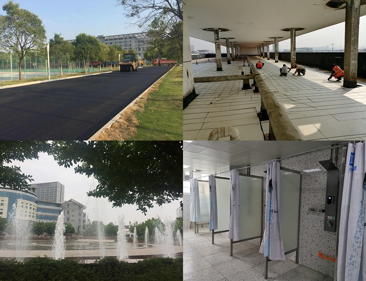 基础设施改造全面覆盖。精准对接师生需求,推进基础设施改造提质增效。先后实施多栋楼宇外立面维修装饰及屋面防水翻修工程、实验室及办公场所维修改造、教室改造、课桌椅更换、空调安装等工程,完成紫云路校区日月广场喷泉维修、体育场灯光照明、路面铺设、绿化景观提升等工程;安装电动自行车充电口350个、电动汽车充电口20个,全方位提升师生生活便利度,完成学生公寓供水增容、家属区供电增容,切实解决用水用电难题。