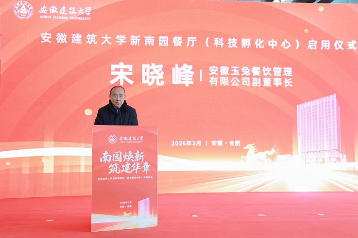 仪式伊始,安徽玉兔餐饮管理有限公司代表餐饮企业作表态发言,承诺为广大师生提供优质餐饮服务。