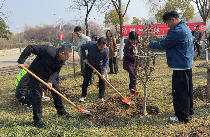 本网讯  春风拂翠,植绿正忙。3月12日,在我国第48个植树节来临之际学校开展“植树添新绿 育人正当时”主题植树活动。学校党委书记马文革、党委副书记李早、党委常委、校长高跃峰带领有关部门负责人、师生代表齐聚紫云路校区图书馆东北侧绿化区域参与植树活动,以实际行动践行生态文明理念,厚植劳动育人情怀,为美丽校园再添新绿
