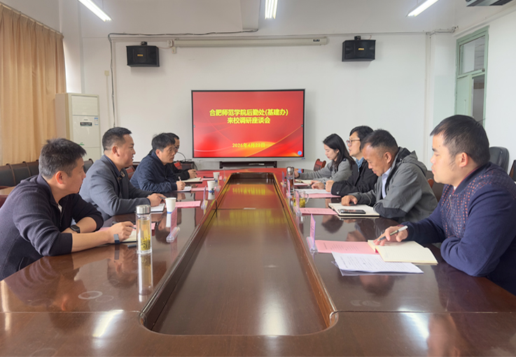 本网讯 4月23日上午,合肥师范学院后勤处(基建办)副处长丁言浩一行来我校调研后勤基建管理工作。座谈会在紫云路校区徽学楼1812会议室举行。后勤基建处负责人及相关人员参加座谈。