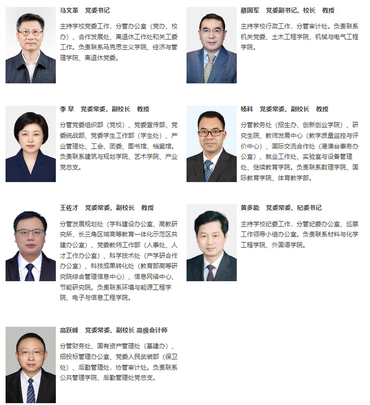 本网讯 今年以来,省委充实安徽建筑大学领导班子。蔡国军任校党委副书记、校长。杨科任校党委常委、副校长。王佐才任校党委常委、副校长。黄多能任校党委常委、纪委书记。高跃峰任校党委常委、副校长。学校领导班子现共有7名成员。