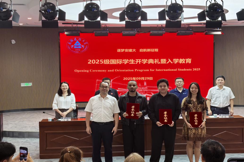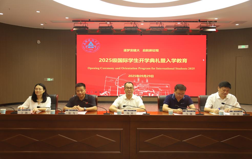 本网讯 金秋送爽,丹桂飘香。9 月 29 日,安徽建筑大学“逐梦安建大,启航新征程”2025 级国际学生开学典礼暨入学教育在徽智楼报告厅圆满举行。副校长杨科教授出席典礼并致辞,学校相关职能部门负责人、国际教育学院教师代表、2025级全体国际新生及在校生代表齐聚一堂,共同见证这一重要时刻。