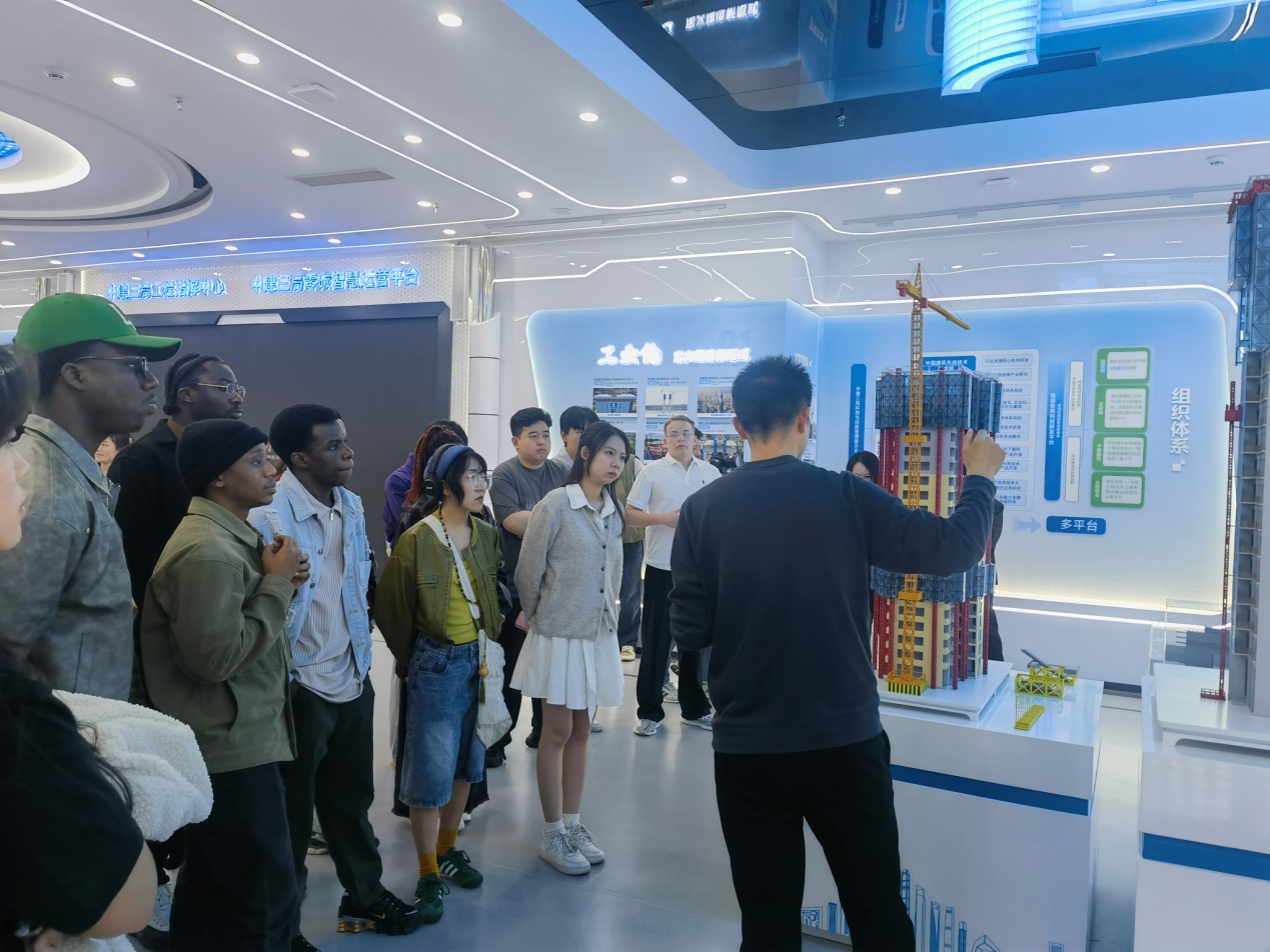 在合肥京东方,留学生们沉浸式探秘世界领先的智能制造生产线,通过互动展厅了解屏幕背后的科技奥秘,体验从玻璃到智能显示屏的蜕变过程,了解中国高端制造业的创新脉络与应用场景。在中建三局安徽公司,展厅内陈列的精细建筑模型从整体布局到局部细节,无不展现出现代建筑的科技感与人文关怀,企业负责人围绕实习机会、职业发展等话题与留学生深入交流,并介绍了企业在城市建设中的央企责任担当,帮助留学生们进一步加深对中国国情与安徽发展实践的认识。