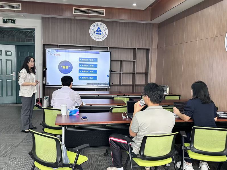 活动中,张艳老师首先结合自身参赛经历,围绕混合式教学的核心要点、教学设计的关键环节以及竞赛中的注意事项等方面进行了系统分享。她强调,混合式教学需注重课程内容的整合与创新、教学活动的科学设计以及信息技术的有效运用,同时还应突出“以学生为中心”的教学理念,体现课程的高阶性、创新性和挑战度。
