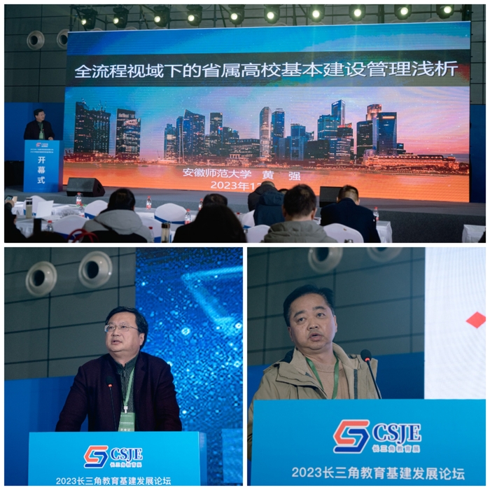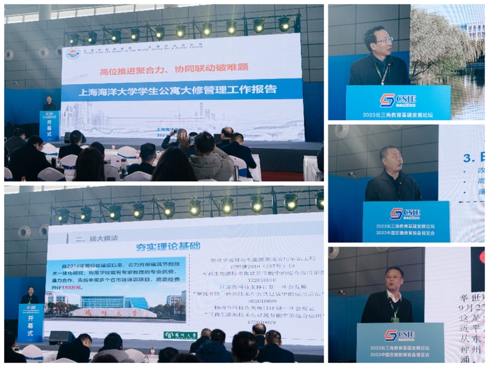 本网讯 12月3日,“建设绿色低碳校园,服务教育高质量发展—2023长三角教育基建发展高峰论坛”在合肥滨湖国际会展中心隆重举行。本次论坛由安徽教育基本建设学会举办,来自长三角地区三省一市教育行政部门发展规划、基建、后勤及本地区高校基建、后勤等有关部门负责同志,和有关高校设计院科研院所的领导、专家学者等共240余人齐聚一堂,共同探讨教育基建发展的最新趋势,推动教育基础设施的优化和升级,助力长三角一体化发展战略。为扩大论坛规模和效果,同期在论坛会场还举办了“2023中国(安徽)教育装备博览会”。