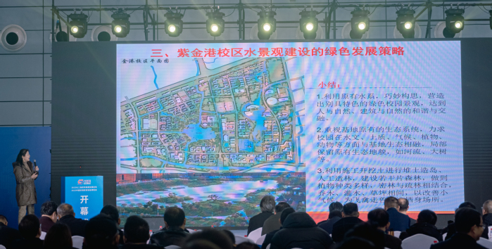 浙江大学平衡建筑研究中心及风景园林研究中心主任、浙江大学建筑工程学院教授、博导王洁做题为《信息化时代的绿色校园规划设计探索》主旨报告,王教授的报告分为现代校园总体规划布局的模式演变、信息时代紫金港校园西区的规划设计探索、紫金港校园水景观建设的绿色发展策略共三个部分,介绍了浙江大学紫金港校区以“现代化、园林化、生态化”的规划理念,以组团概念弱化功能分区,通过强化网络化让多种功能在同一组团中混合的成功经验。并阐释了水文化作为江南建筑的灵魂,在空间的开合中,水可以串起各空间景观的设计理念。