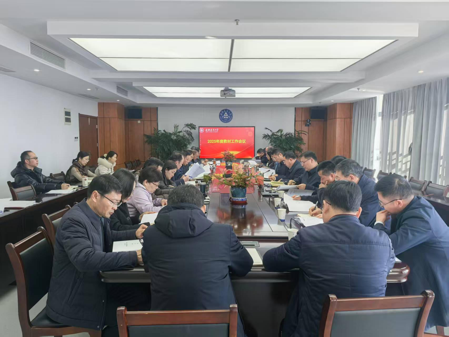 本网讯 2026年1月9日上午,安徽建筑大学年度教材工作会议在紫云路校区徽风楼第二会议室召开。党委书记马文革,党委副书记、校长蔡国军,党委常委、副校长杨科出席会议,学校教材工作领导小组成员及本科生院相关人员参加会议。会议由蔡国军主持。本次会议旨在全面总结“十四五”期间教材建设工作,部署“十五五”教材规划与2026年度重点任务,为推动学校教材工作高质量发展明确方向。