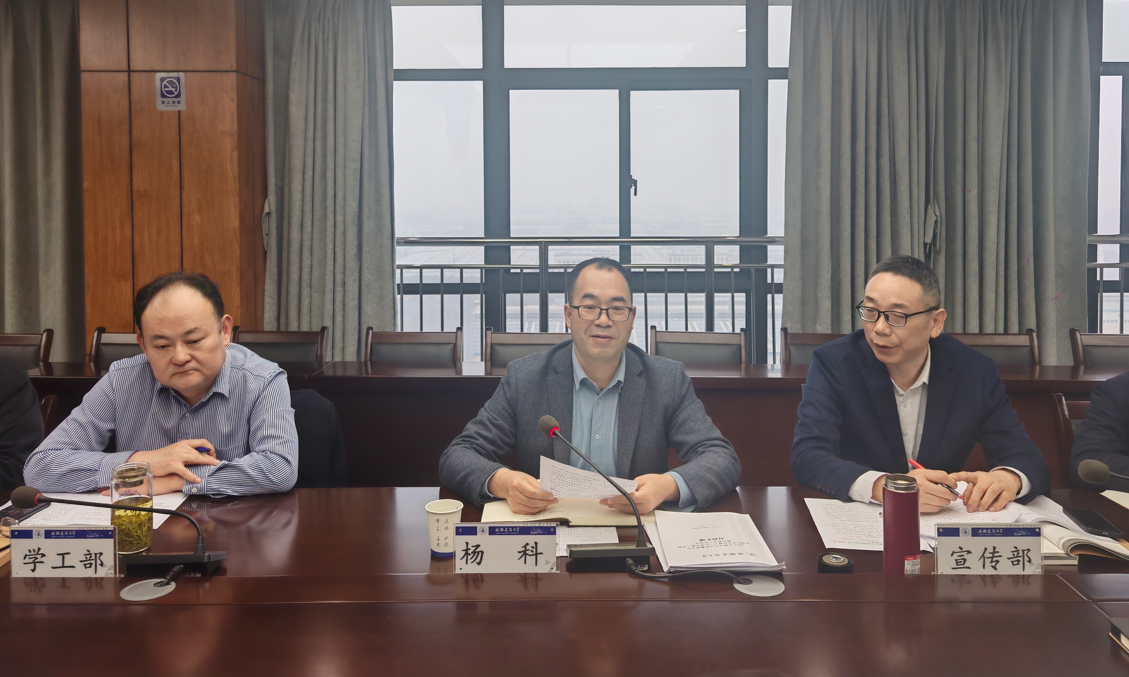 会议第一阶段聚焦教风学风质量提升年专项行动总结。宣传部、学工部、人事处、团委、本科生院等牵头部门先后汇报专项行动开展情况,全面总结了师德师风建设、课堂教学规范、学业帮扶体系、校园文化营造等方面的举措成效及下一步工作计划。