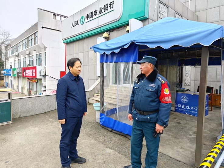 春节前夕,校党委常委、纪委书记、监察专员黄多能带队,采取“四不两直”的方式,对南北区门卫室、监控室、经济与管理学院、快递收发站、新南园餐厅施工现场等关键场所进行了实地走访,通过现场问询等方式,督导节日期间安全保障与值班值守工作落实。