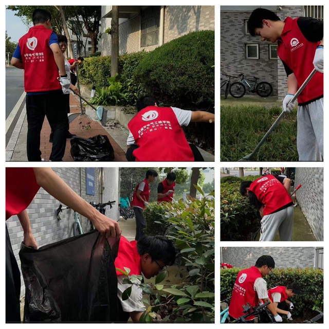 在学生公寓区,另一场环境美化行动同步展开。新生们拿着清扫工具,细致地清理公寓楼外的公共区域——从清扫路面落叶到擦拭公共设施,从捡拾绿化带垃圾到规范自行车停放。大家分工协作,默契配合,让公寓区的面貌焕然一新。“宿舍是我们共同的家,维护好这个‘家’的内外环境,是我们每个人的责任,”2025级电气专业潘文喆同学说,“通过这次劳动,我不仅感受到了团队协作的力量,更增强了对这个‘家’的归属感。”在躬身实践中,同学们将爱校荣校的情怀,落实到了守护身边一方天地的具体行动中。