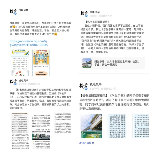 学院积极利用机电易班平台,开展“‘易’起努力,做新时代遵纪守法好青年”主题线上宣传。借助图文解读、短视频、互动话题等新媒体手段,有效拓展了教育广度与深度,提升了学生的参与积极性,在校园中推动形成了“知规守纪、明礼力行”的良好风尚。
