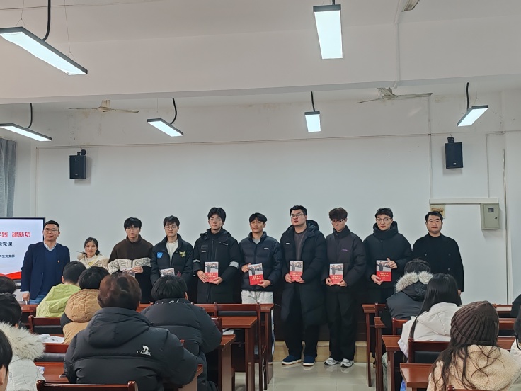 党课结束后,丁超代表校团委党支部向学生党员代表赠送《习近平与大学生朋友们》第二卷,希望他们牢记习近平总书记教诲,汲取奋进力量、廓清成长路径、激发青春豪情,以“闯”的精神和“创”的劲头,努力成长为德智体美劳全面发展的社会主义建设者和接班人。