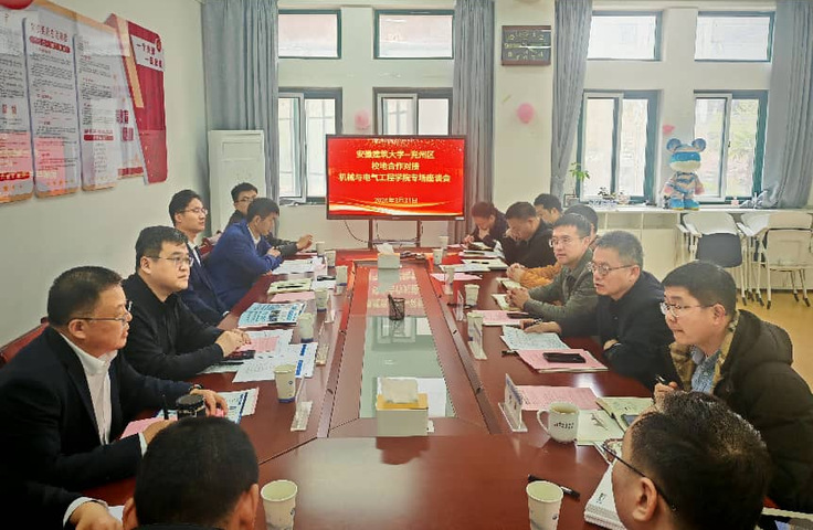 本网讯 3月31日下午,安徽建筑大学与济宁市兖州区校地合作对接暨机械与电气工程学院专场座谈会在紫云路校区徽华楼南楼2212会议室举行。会议由机电学院副院长(主持工作)刘伟主持,双方围绕产学研合作、人才共育、技术攻关等议题展开深入交流。