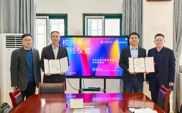 在徽华楼2212会议室,学院领导及工业设计系教师与来访嘉宾深入研讨校企合作路径。双方基于本次学科竞赛和联合毕业设计课题的良好合作基础,对课程、实习及毕业设计嵌入企业进行探讨;围绕工业设计专业高端装备智能制造方向共建课程体系,培养适配产业需求的应用型人才进行了充分讨论。会后学院为汪睿、文锋颁发企业导师聘书。