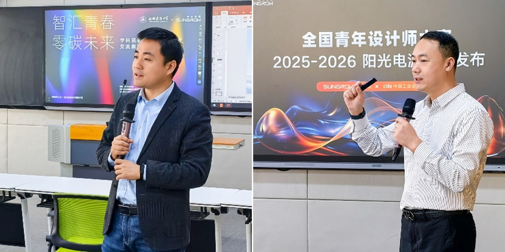 在徽学楼智慧教室中,阳光电源国家级工业设计中心总监汪睿、设计策略总监文锋,为工业设计专业师生详细介绍了其在光伏、储能领域的全球布局,发布2026全国青年设计师大赛企业命题“未来社会的智慧能源管理系统设计”。参会师生就绿色能源应用场景挖掘、新能源硬件设备的环境共生倡导、能源监控与管理“AI+”服务探索三大创意方向,与来访嘉宾展开了热烈的交流,并针对2026届联合毕业设计进行一对一的阶段性交流指导,实现以真实产业场景锤炼设计实操技能、以项目成果反哺教学的目标。