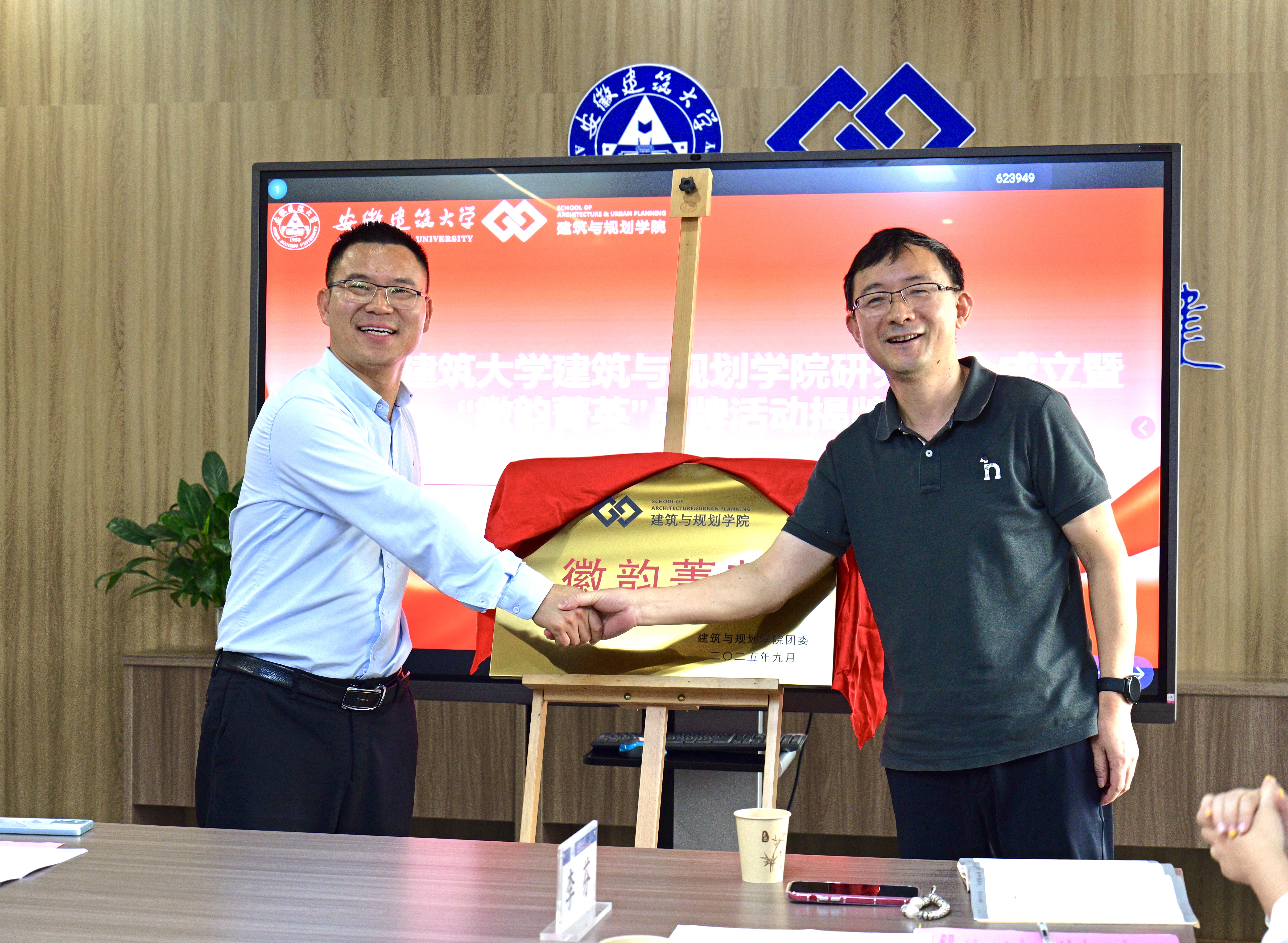 校团委书记丁超对建筑与规划学院研究生会的筹建工作给予充分肯定,并代表校团委向研会成立表示热烈祝贺。他提出,研究生会需紧密围绕学校育人中心任务,切实发挥组织引领作用,一方面强化思想建设,筑牢研究生思想根基;另一方面优化服务体系,聚焦学生需求,全力打造一批具有广泛影响力与鲜明专业特色的品牌项目,为全校研究生工作注入新活力。随后,吴运法与丁超共同为“徽韵菁英”活动揭牌,现场掌声雷动,仪式气氛达到高潮。