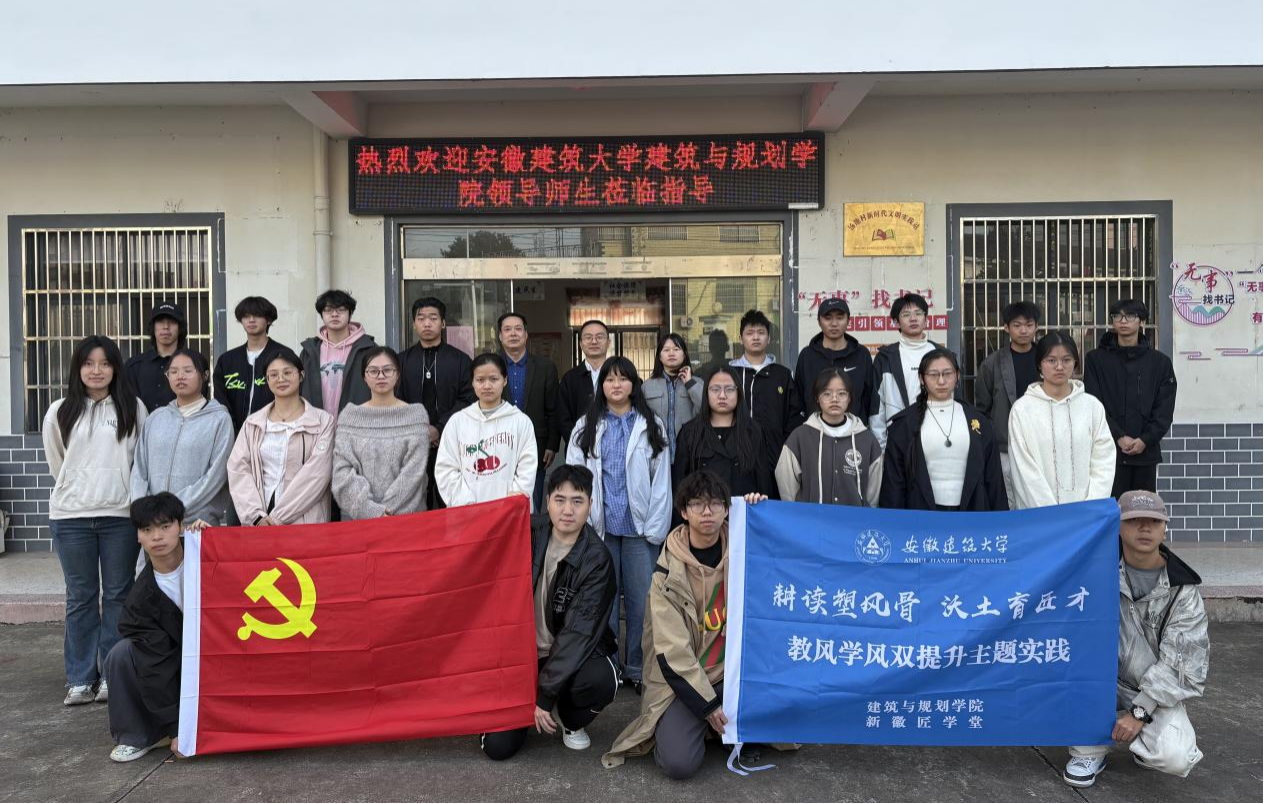本网讯 11月5日至6日,建筑与规划学院组织教师党支部、研究生党支部和本科生班级代表共赴舒城县汤池镇,开展为期两天的“耕读塑风骨,沃土育匠才”党团共建主题实践活动。在学院党委组织员唐劲松、副院长聂玮带队下,师生深入田间地头,将课堂延伸至乡村一线,推动教风学风建设与乡村振兴实践深度融合。