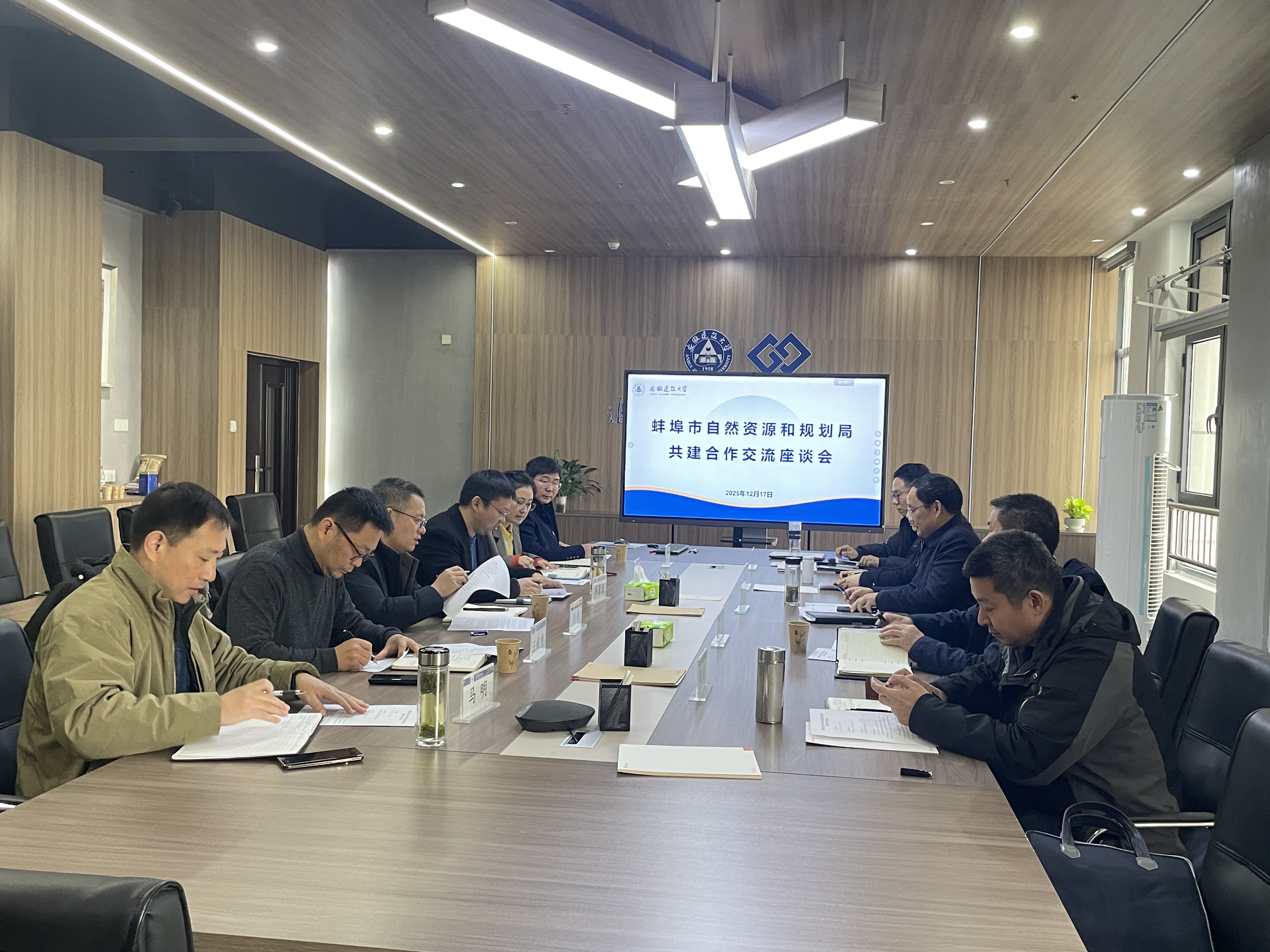 本网讯 为加速推动校地合作意向转化为实际成果,2025年12月17日,蚌埠市自然资源和规划局党组书记、局长李坤圣同志一行回访我校建规学院,就双方前期达成的合作共识进行深入对接与细化落实。建规学院、机电学院、材化学院主要负责人及骨干教师代表参加了本次座谈。