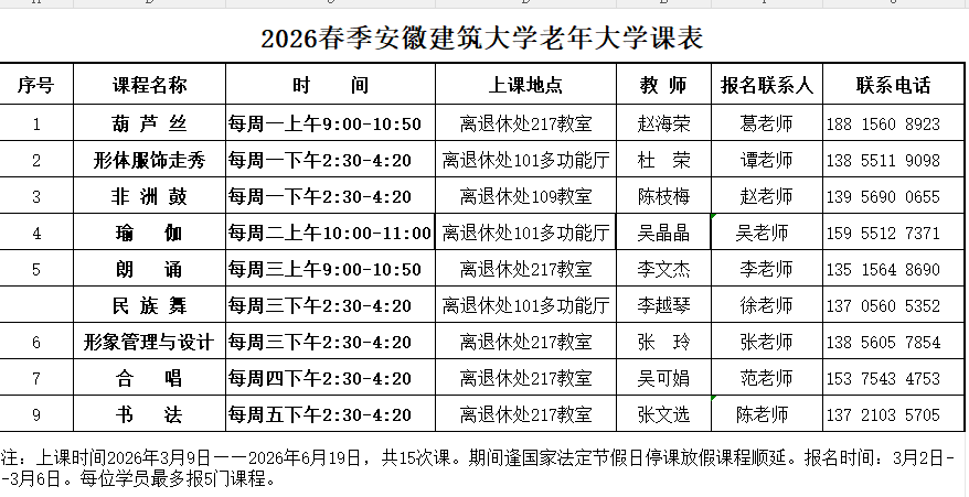 安徽建筑大学老年大学2026年春季招生简章