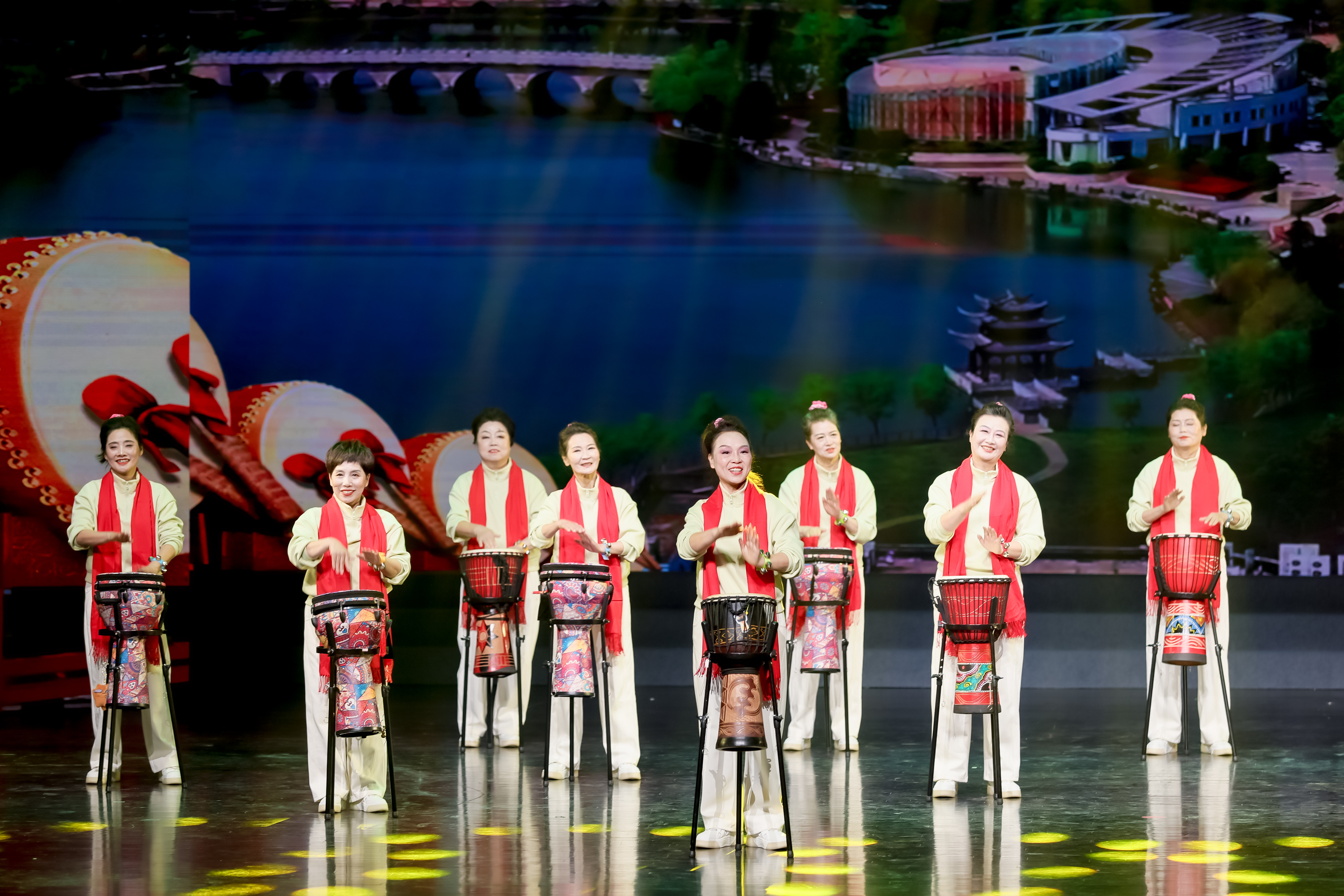 展演中,15位非洲鼓班级学员精神饱满,默契配合。她们以娴熟的技巧、动人的节奏和充沛的情感,将一曲《好日子》演绎得淋漓尽致。那铿锵的鼓点,既是节奏的呈现,也生动体现了学员们热爱生活、追求梦想的精神风貌。