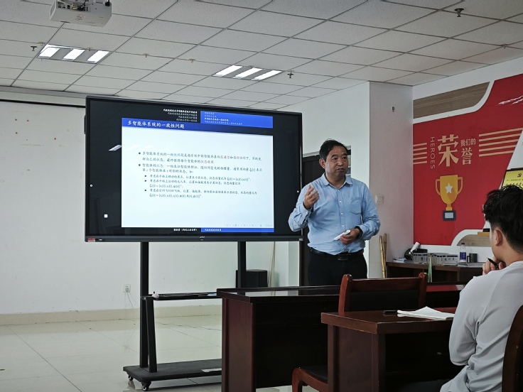 张胜贵教授从代数连通度和多智能体系统的定义切入,介绍了多智能体系统一致性收敛速率与通信拓扑图代数连通度之间的关系,以及代数连通度在复杂网络、交通网络等诸多领域的应用。报告会后,学生围绕多智能体系统一致性的相关问题踊跃提问,张胜贵教授逐一解答,现场学术氛围浓厚。(作者:谭莹莹;一审:水天柱;二审:谢新平;三审:余江应)