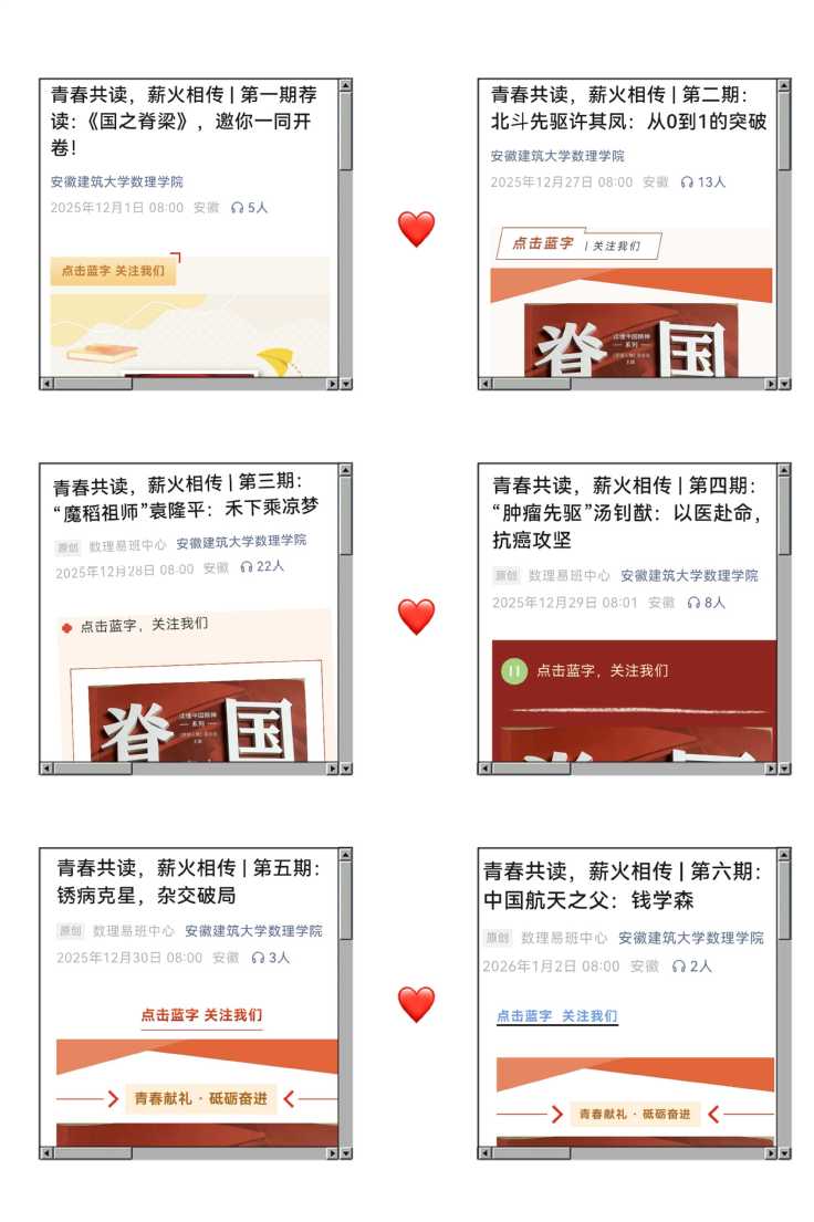据悉,活动后期还将推出“最佳人气作品”网络投票以及全校接力诵读,进一步打破学院学校边界,吸引更多师生参与互动。此举不仅使“青春共读”的理念更加深入人心,也让薪火相传的力量持续蔓延,形成线上线下联动的阅读生态。未来,数理学院将持续深化品牌活动建设,以书为媒、以读为桥,引导青年学子在勤学善思中成长成才,在薪火相传中践行担当,让青春在为祖国、为人民的奉献中焕发出绚丽光彩。(作者:赵妮;一审:林浩东;二审:张毅;三审:胡燕青)