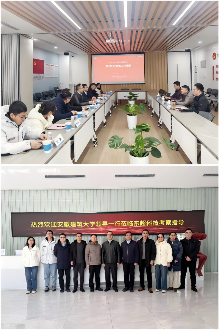 随后,双方举行座谈交流。韩东成对母校领导老师的到来表示热烈欢迎,深情回顾了在校求学经历,并介绍了东超科技自成立以来的发展成就、技术布局与未来规划。他表示,作为建大校友,始终心系母校发展,期待在现有合作基础上,进一步拓展在国家重点研发计划、科技成果转化、人才培养与实验室共建等方面的深度协作,共同推动科技创新与产业升级。