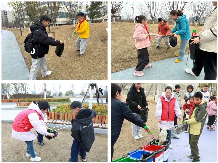 讲座结束后,学生党员与小学生们一同前往义乐公园,开展垃圾清理志愿服务活动。大家手持垃圾袋、垃圾夹,沿着公园步道、绿化带仔细清理烟头、纸屑、塑料瓶等废弃物,并现场对捡拾到的垃圾进行分类投放。支部党员们耐心地向小学生们讲解不同垃圾对应的分类方法,手把手指导大家正确区分可回收物与其他垃圾,在实践中巩固所学知识,用实际行动践行雷锋精神和文明环保理念。