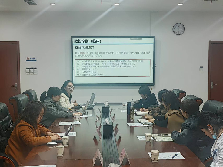 座谈会上,双方围绕智慧医疗领域的临床需求与技术应用展开深入交流。数理学院团队重点介绍了在多源数据融合与多学科诊疗(MDT)辅助决策、骨质疏松早期预警及影像建模等方面的研究进展,并就临床数据分析辅助决策系统(ViMDT)、骨质疏松智能识别系统等项目的落地与优化展开研讨。