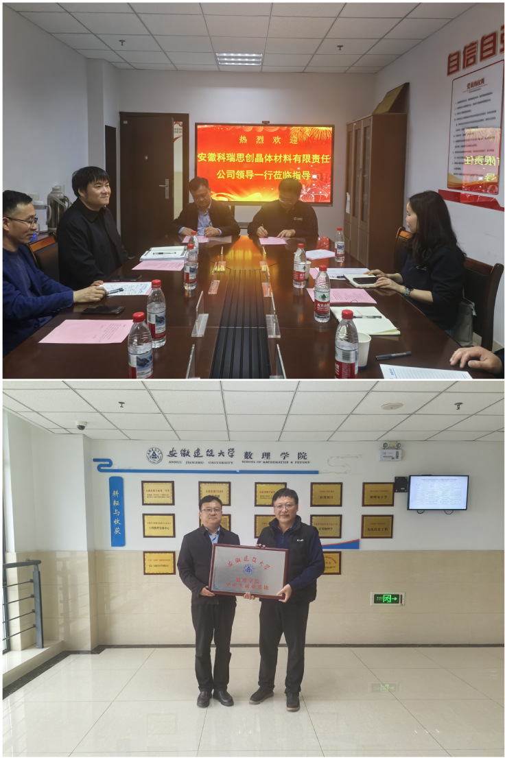 本网讯 4月16日下午,安徽科瑞思创晶体材料有限责任公司董事长罗毅一行回访数理学院,数理学院领导班子成员、应用物理系教师、毕业班辅导员及2026届研究生代表参加座谈会。