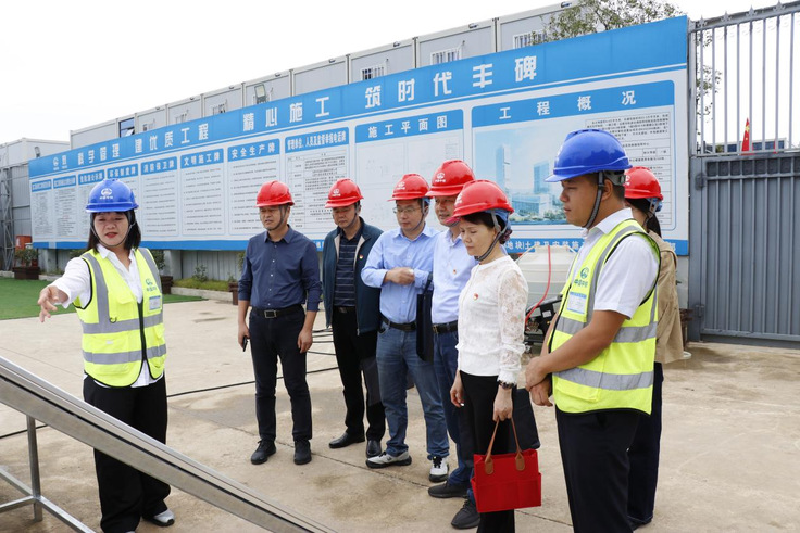 本网讯 2024年10月17日下午,安徽省住房和城乡建设厅工程质量安全监管处二级调研员张晓燕、三级调研员付芝兵、四级调研员蔡勇,安徽建筑大学土木学院安全工程系教师秦荣水等一行6人,赴中铁四局合肥轨道交通线网控制中心及甘棠置业项目,开展以“红色工地赋能建筑施工高质量发展”为主题的党日活动。这次活动旨在深入落实党建与项目建设相融合的理念,通过实地调研和经验交流,促进红色工地建设的进一步完善,赋能建筑施工高质量发展,同时推动扬尘治理工作的高效落实。