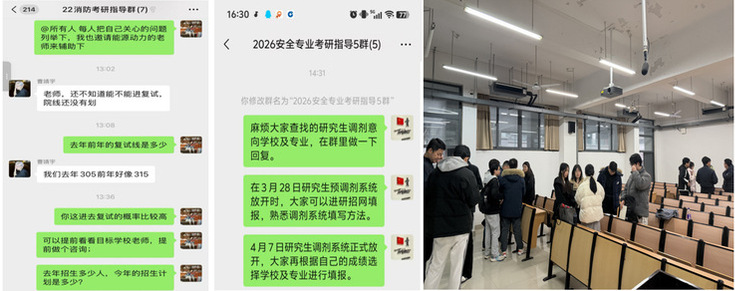各专业系老师们则聚焦复试实战环节和调剂核心要点,详细为学生们讲解了复试考核流程、专业课准备要点、综合面试技巧、个人简历优化等重点内容,细致梳理了调剂政策、调剂规则、时间节点、信息收集、院校筛选等关键事项。现场互动氛围热烈,通过面对面交流和答疑,有针对性解决了同学们在复试备考中遇到的困惑以及面临调剂的迷茫。会后,学院还采取包保的形式建立了考研复试指导群,以一名专业教师对接6名指定学生的方式,点对点跟踪学生复试及调剂状况,切实实现帮扶全覆盖、指导无死角,全程守护学子复试及调剂每一步。