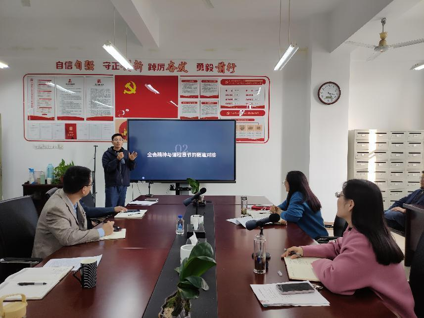 习近平新时代中国特色社会主义思想概论教研室认为全会精神为课程提供了最新理论滋养与实践案例,既破解了教学中理论与现实脱节的问题,同时又能增强课程的针对性、吸引力。习思想教研室还就全会精神与课程章节的精准对接进行阐述。