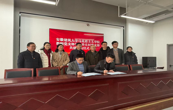 参观结束后,机关党委团委党支部书记丁超与小井庄党支部书记郭超共同为“安徽建筑大学大学生社会实践基地”揭牌,马院习近平新时代中国特色社会主义思想教研室教师党支部与小井庄党支部签订了共建协议。(文/图:周叶君 夏文雨;一审:任亚若;二审:刘晓君;三审:李万银)